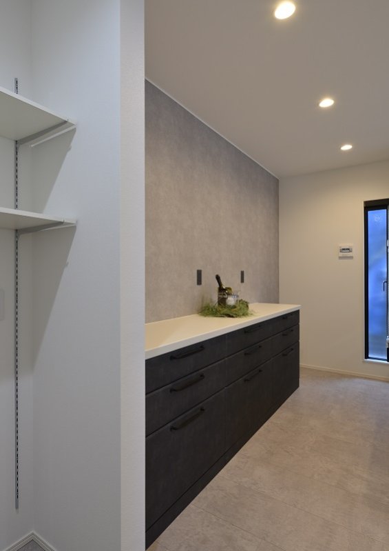 冷蔵庫の開閉方向を考えつつ、リビングから見えないパントリーの中に配置にすることで生活感を出さないよう配慮しました。