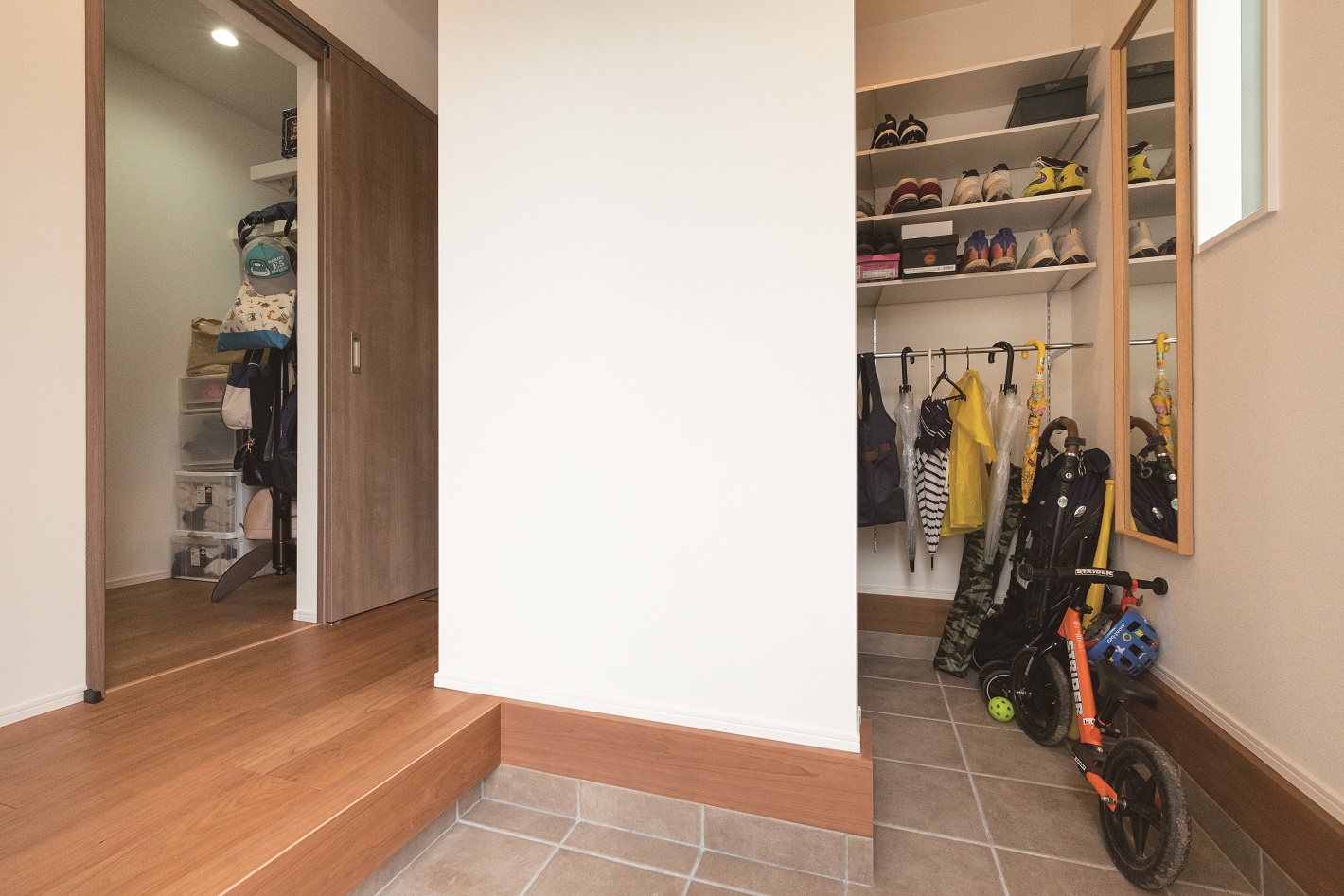 玄関には使い勝手がよく、通り抜け可能なシューズクロークを採用しました。