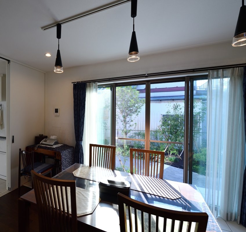 キッチンダイニングから眺めることができる庭は、静岡の四季を教えてくれます。