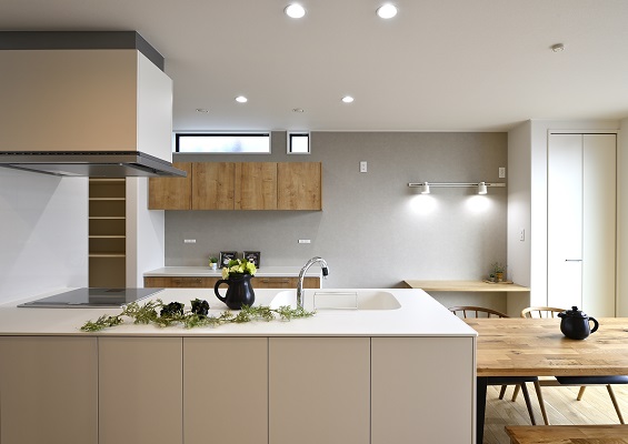 キッチンからはスタディーコーナーやリビングが見渡せて、家事をしながらでも子どもの様子を見ることができます。