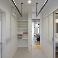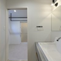 廊下側に設けた幅広洗面台で、朝の混雑ゼロへ