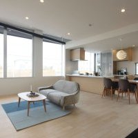 プロのデザイナーが照明・家具・雑貨小物までコーディネート。ダイニングのペンダントライトがかわいい、明るい色でまとめた北欧風のLDK空間です。